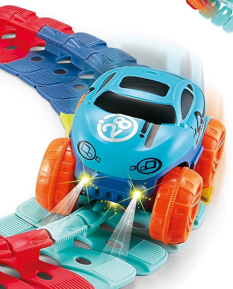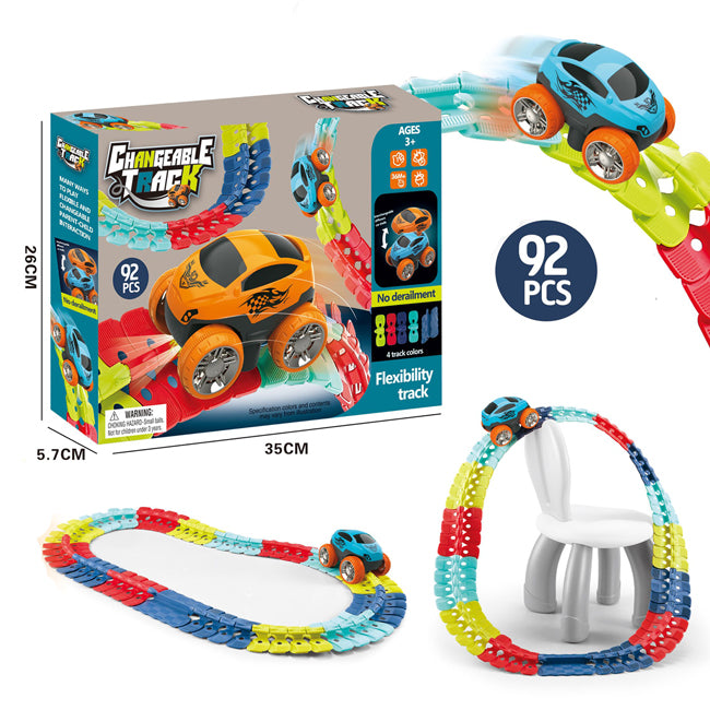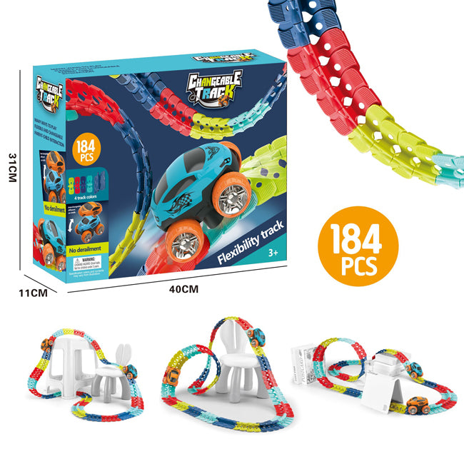 Build your own race track with 92/138/184 pieces! You can twist and turn the individual segments as much as you want in order to create bends for turns or extract a sharp corner from an inclined surface.