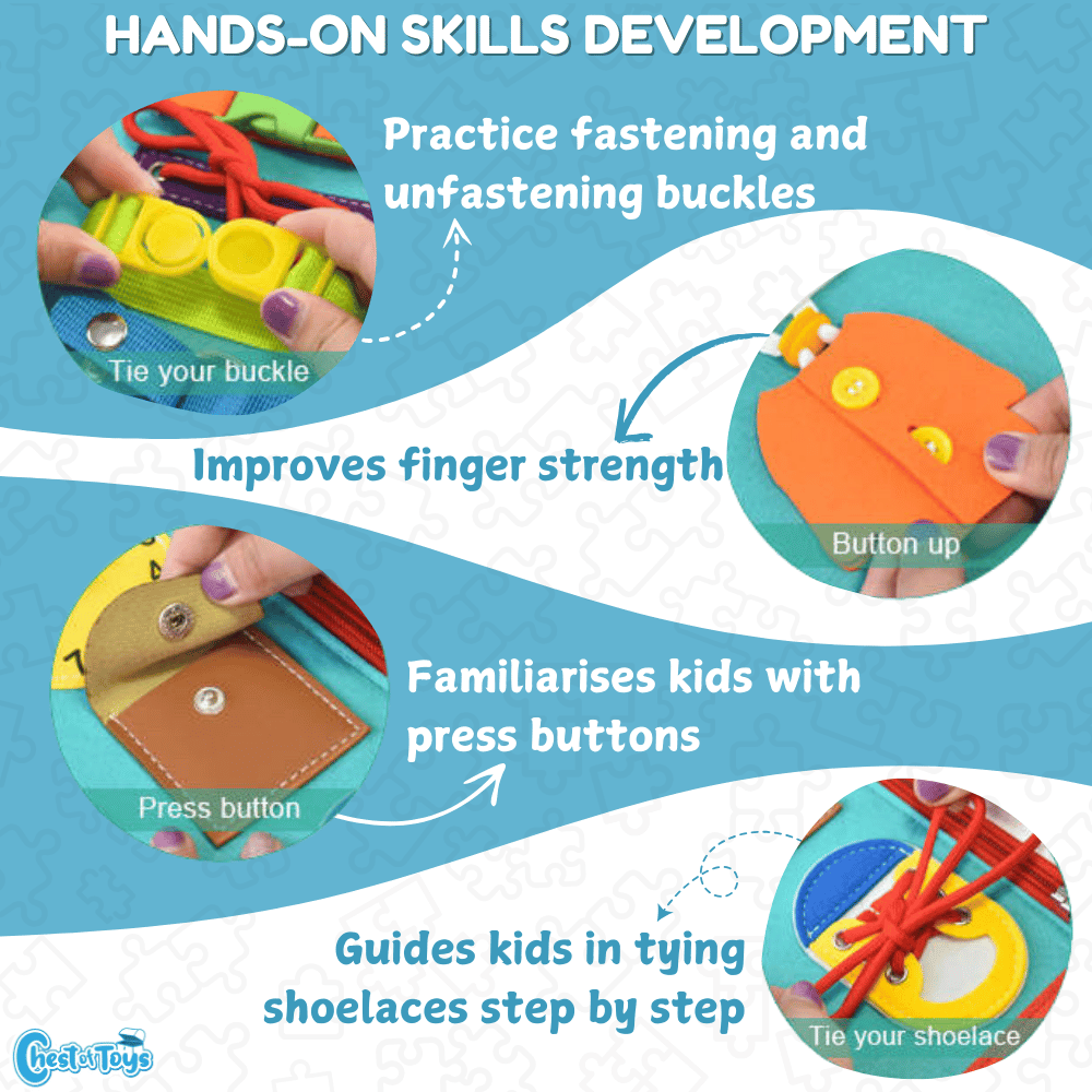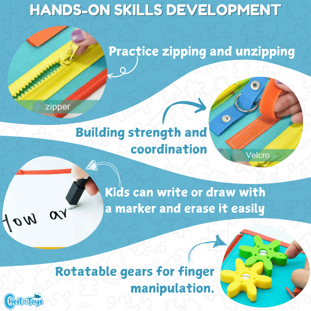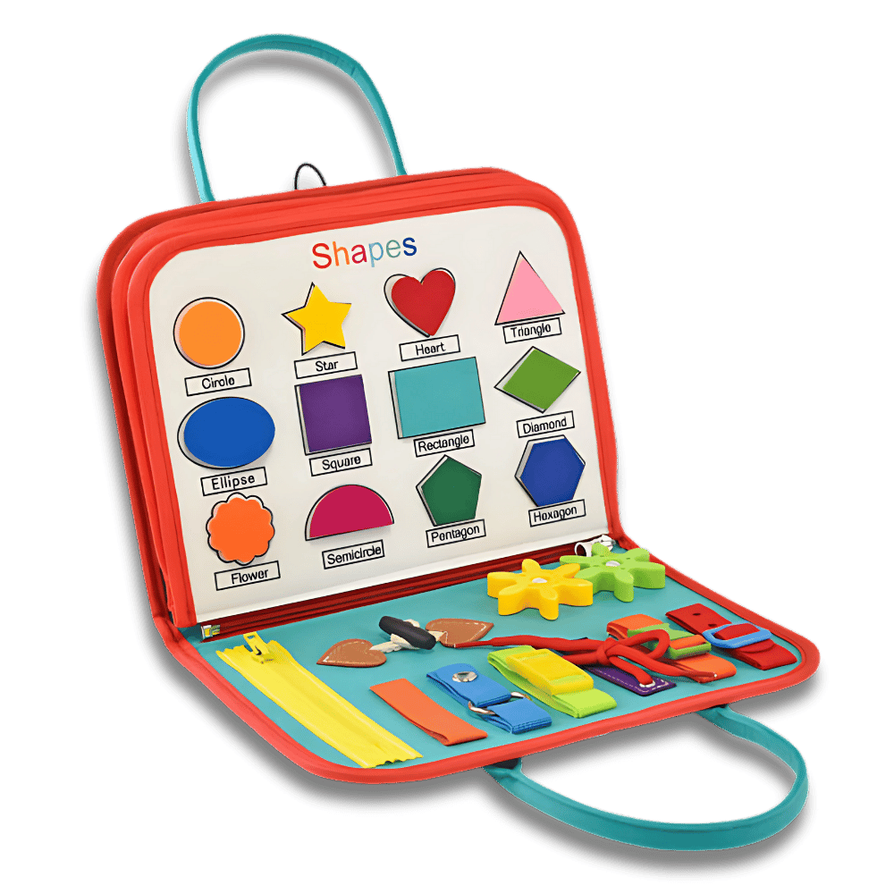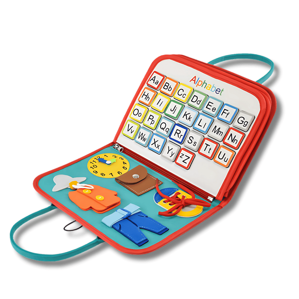 Hand-held design of the busy board allows kids can carry it everywhere, which also is a veritable travel toy for Airplanes, Cars, and other Outdoors Activities