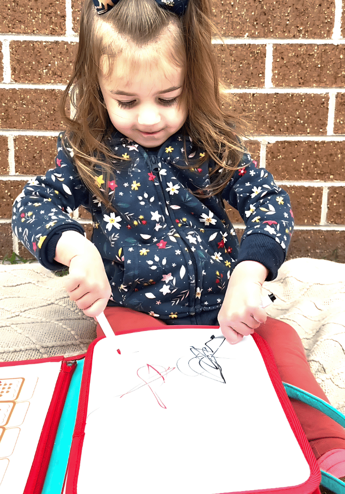 Includes a wipeable drawing board and puzzles to inspire imagination and logical thinking.