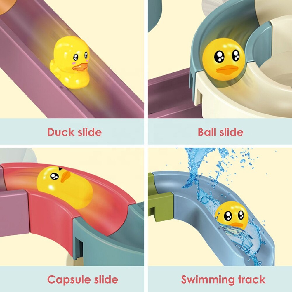 Variety of ducklings: The water slide comes with sliding ducks, duck capsules and duck balls, adding dynamic elements to the play experience and enhancing sensory stimulation and making bath time even more engaging and enjoyable.