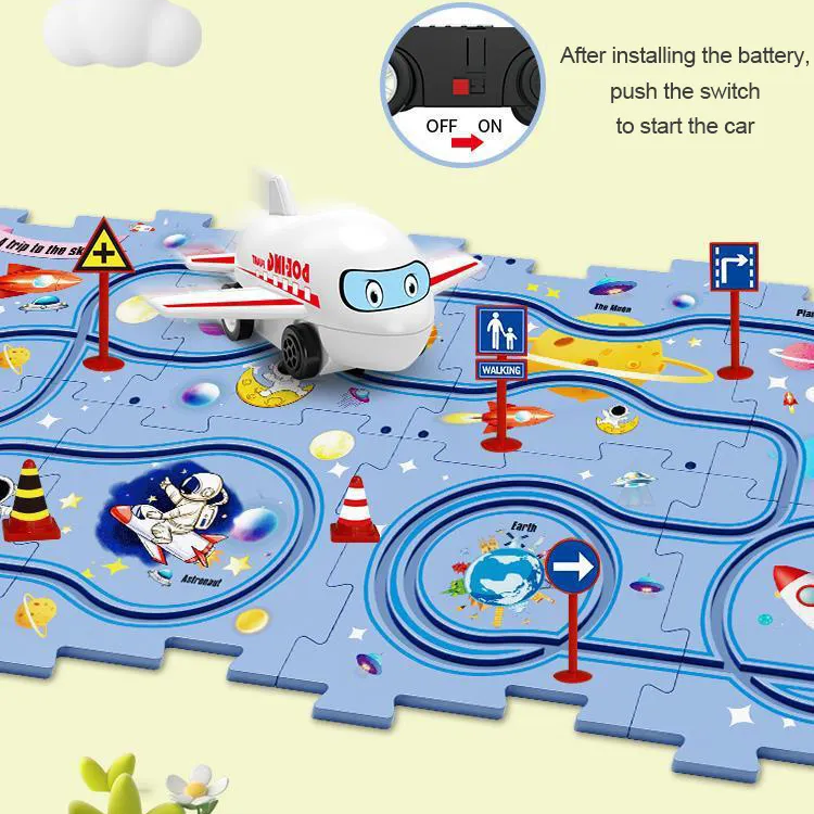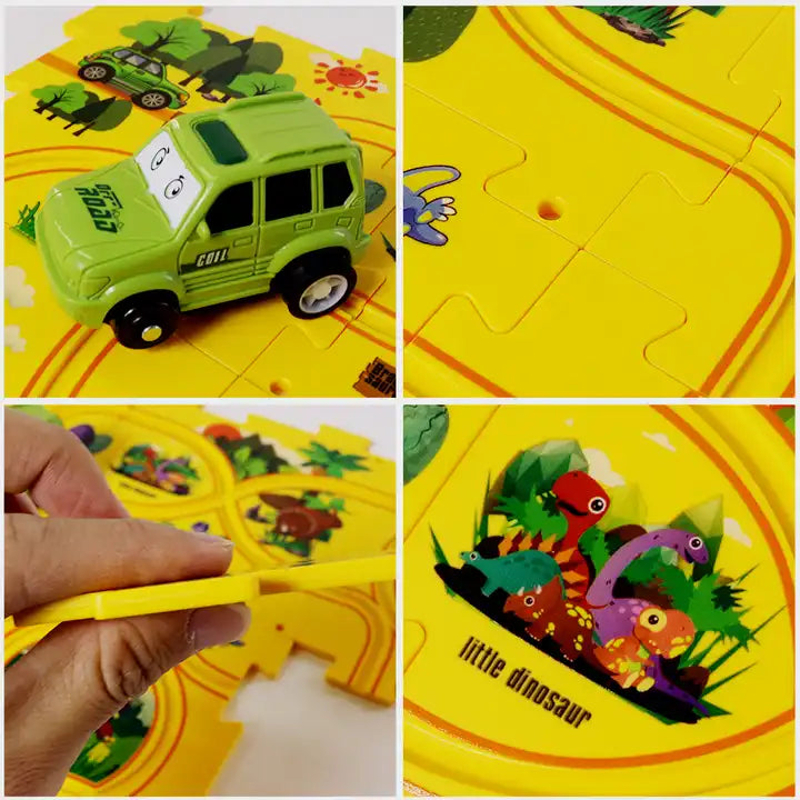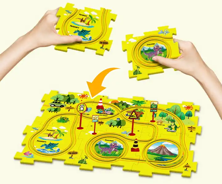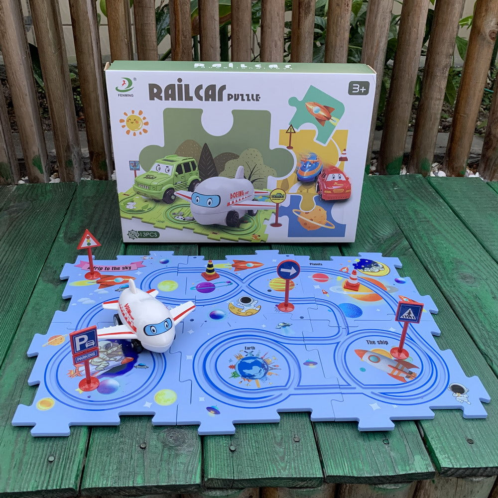 Dive into the railroading world with four captivating puzzle tracks - Dinosaur, Forest, Ocean, and Space - each with its unique themed vehicle.
